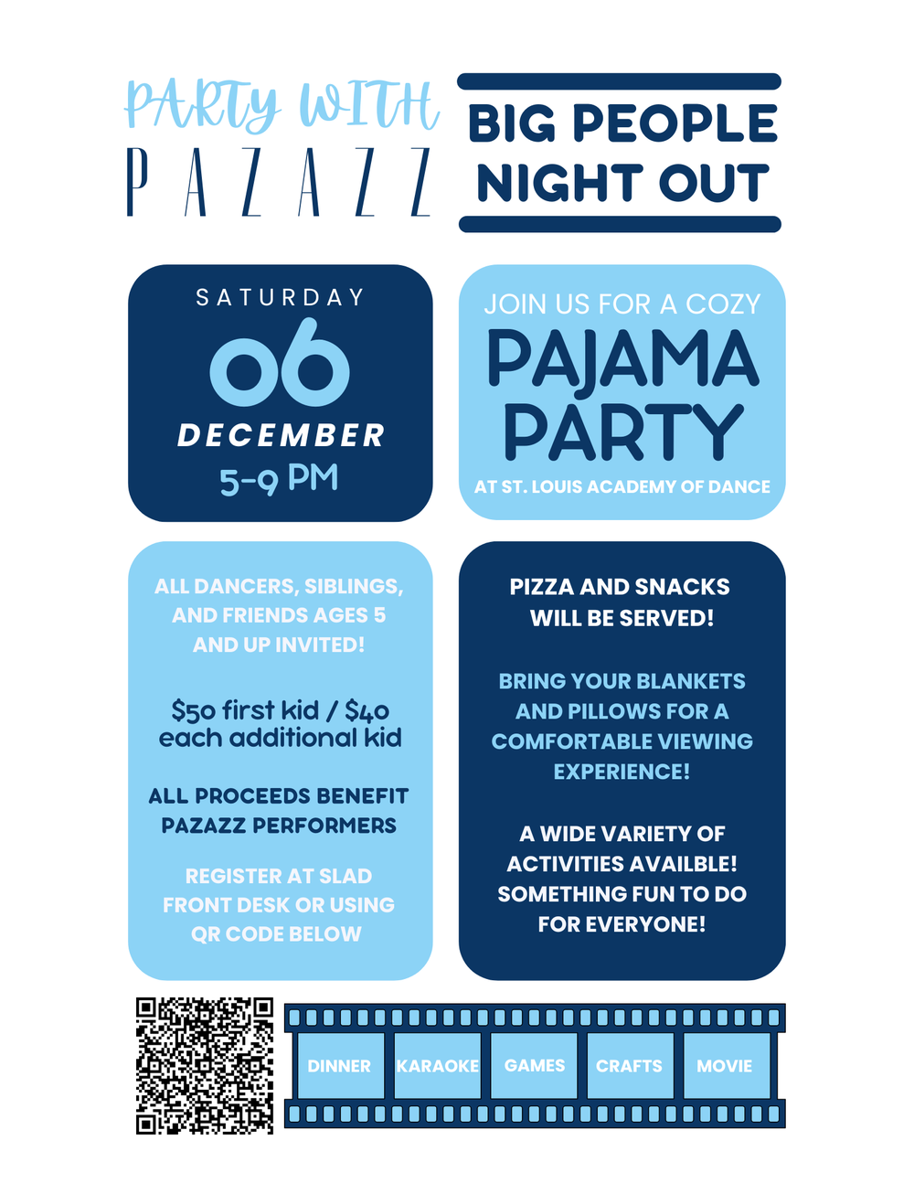 In addition to weekly classes, SLAD offers opportunities to perform throughout the year! Showtime, Choreography Showcase, Pazazz Performers, and more! We also offer a wide variety of master classes and workshops.